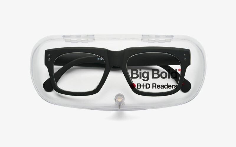 Óculos de leitura retangulares com armação grossa, de estilo original e forte personalidade.