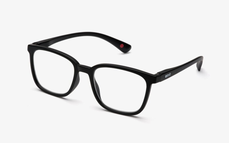 Óculos de leitura unissex com armações retangulares generosas e acabamento soft touch, ideais para um visual moderno oversize.